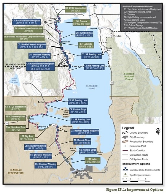 According to the study from 2018 to 2022 the corridor had 800 crashes, nine of which were fatal. From the Flathead County line to Somers, the study includes recommendations for passing lanes, rumble strips, rockfall mitigation and shoulder widening.