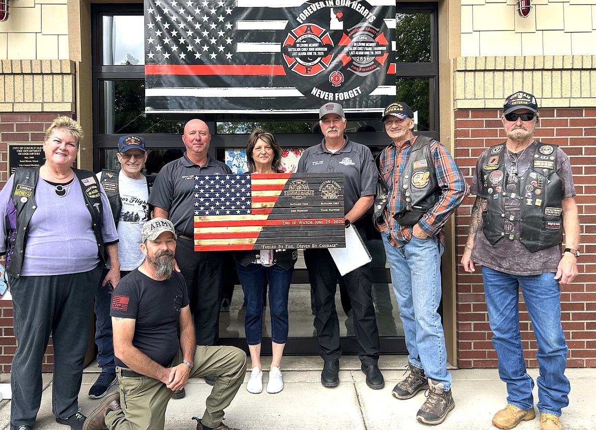 On Thursday, they presented an etched, wooden flag that traveled nearly 2,000 miles to the Coeur d’Alene Fire Station on Third Street and Foster Avenue.
