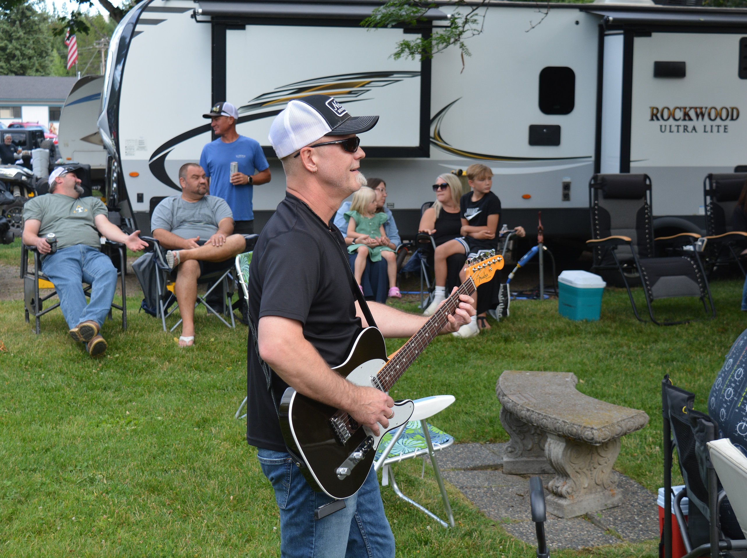 The band Prairie Fire called the donations to the Justus family “the reason everybody is here” and pointed out red boxes where people could contribute or send Venmo funds to the family.
