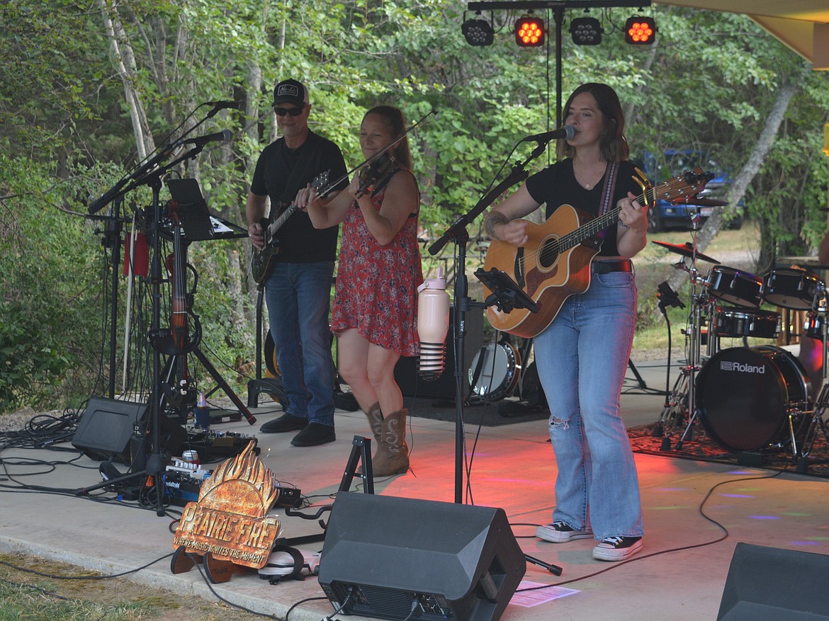 The band Prairie Fire called the donations to the Justus family “the reason everybody is here” and pointed out red boxes where people could contribute or send Venmo funds to the family.