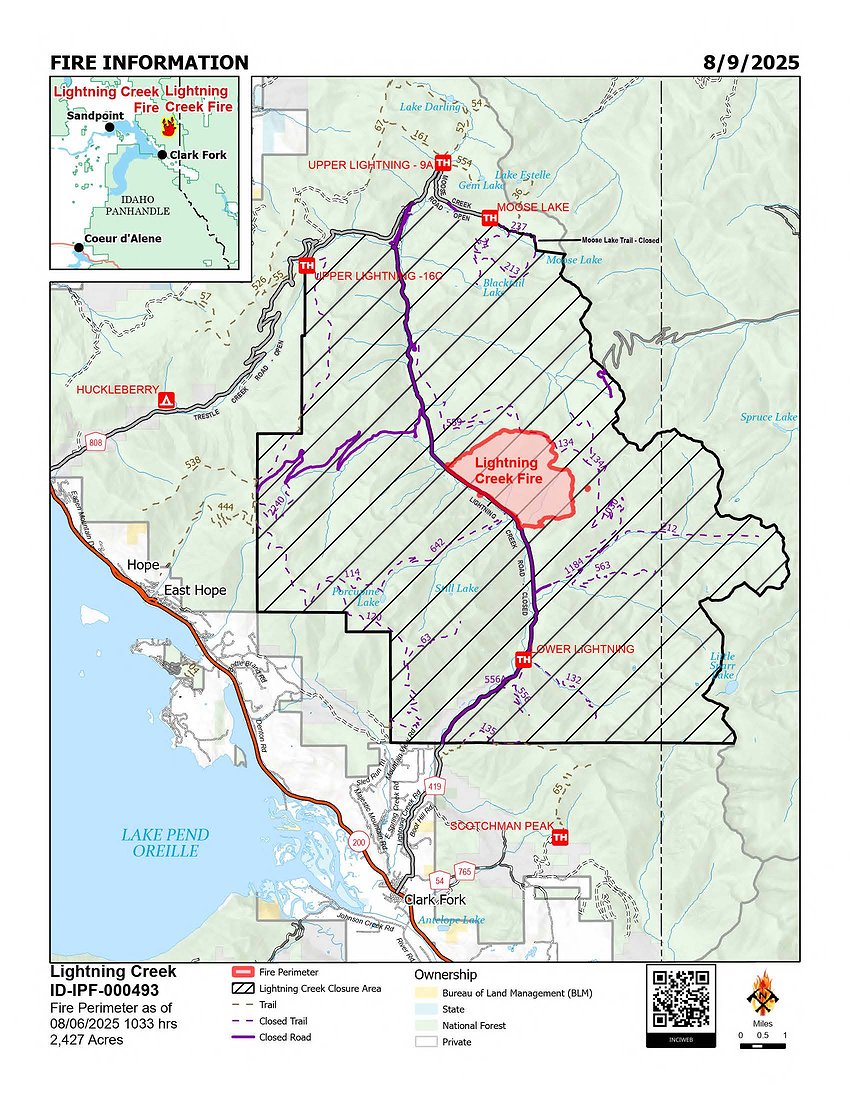 Bryce Barth, acting U.S. Forest Service North Zone fire management officer, said a lightning strike in the Lightning Creek drainage resulted in the fire, with a confirmed sighting at about 10:30 p.m. on July 30.