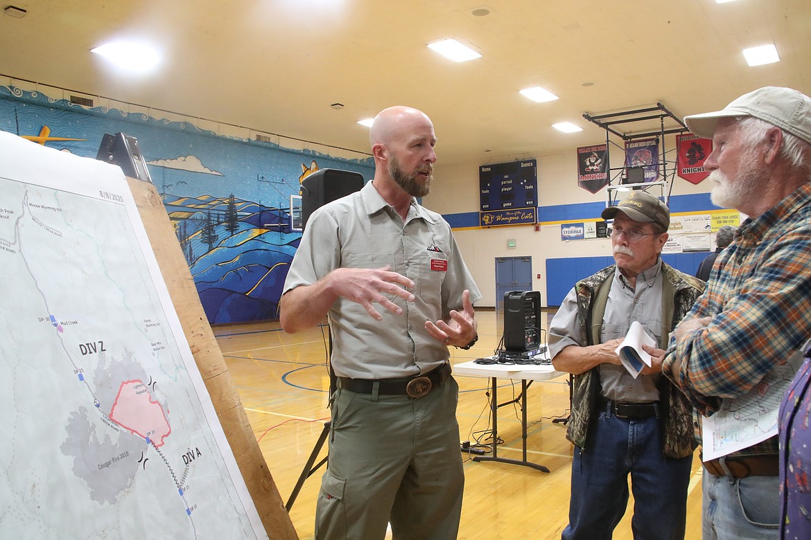 Martin and a host of area officials spoke to about 100 residents from the Hope and Clark Fork area as part of a community meeting to update them on the fire, efforts to battle the large wildfire and potential risk to the community.