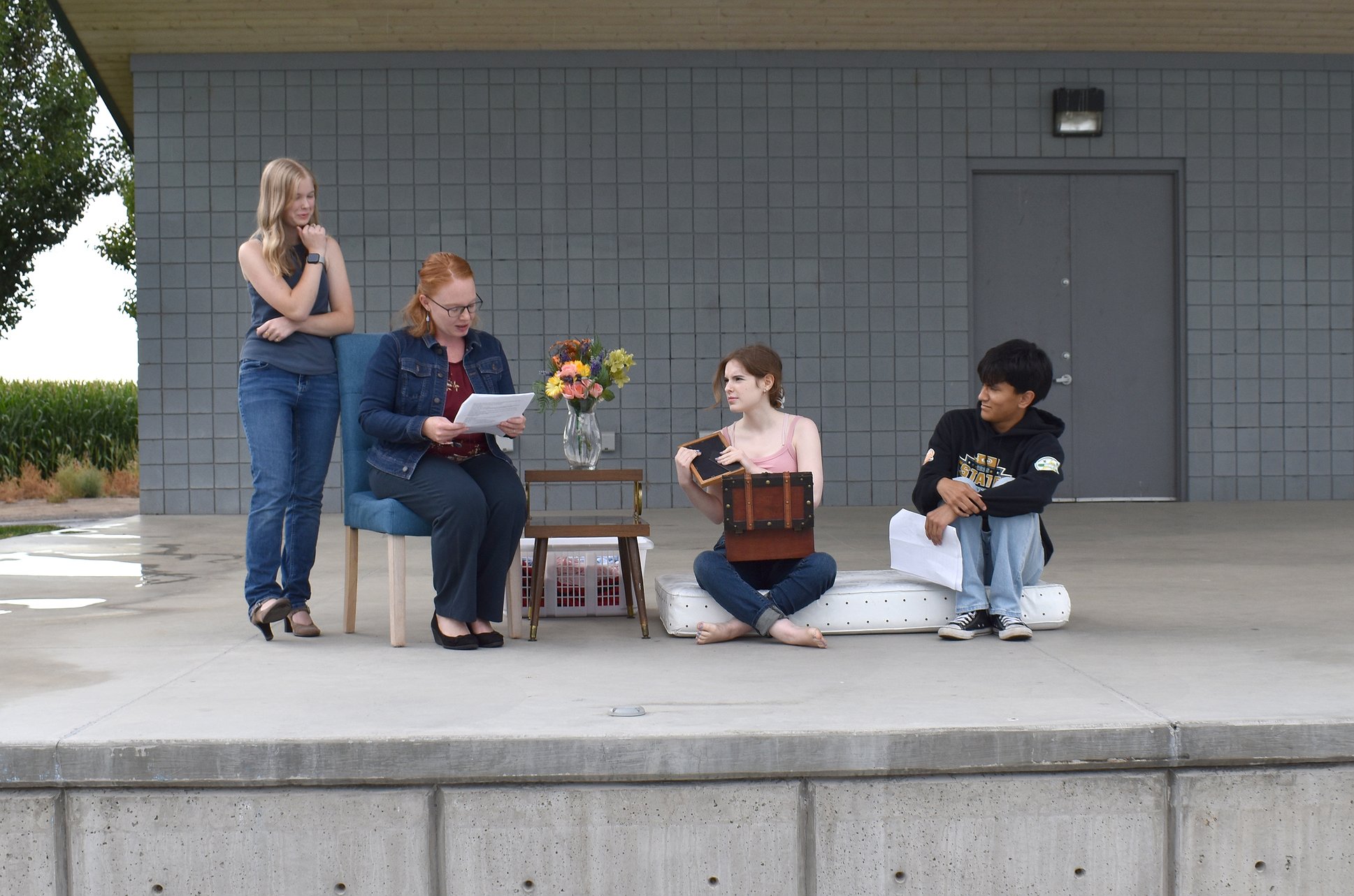 “Last summer (QVAA) … posted on Facebook, ‘We don’t have enough volunteers to have a summer production,” said director Emily Ellis. “And my heart is really in theater … so I wrote them and said I would volunteer. And they wrote back and said, ‘So you want to direct.’ I said I haven’t directed a whole lot, just my second year of college. And they were like, ‘That’s fine. You’ll be great.’ So here I am.”
