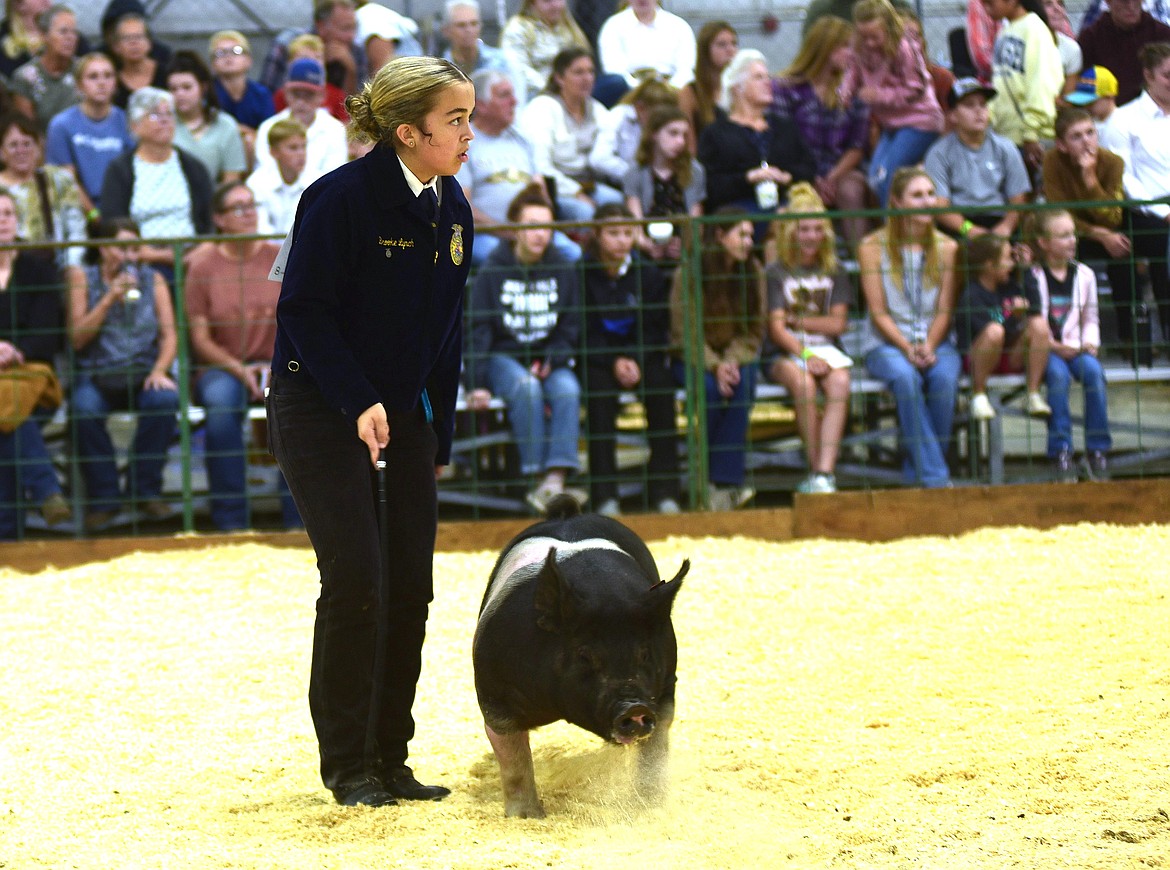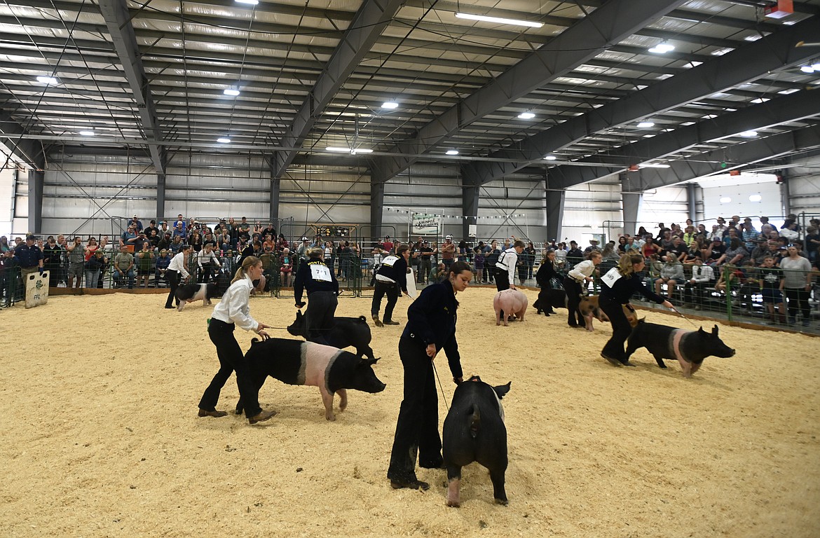 It was standing room only, as fairgoers gathered to watch the showmanship competition, with dozens of competitors lining up with their pigs waiting their turn to enter the ring.