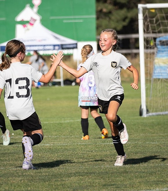 Courtesy photo The Sting U10 girls soccer team competed at the Northwest Cup last weekend at the Spokane Polo Fields. After winning its group to advance to the semifinals, the Sting faced Spokane Shadow Academy in a thrilling match. Regulation ended in a 2-2 tie, sending the game to penalty kicks. The shootout went eight rounds before the Sting narrowly fell. Pictured is Rya Verlanic (13) and Brystol Hayes of the Sting.