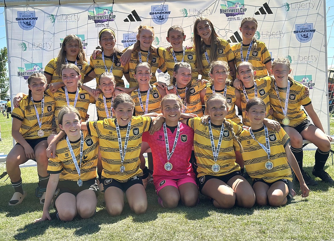 Courtesy photo The Sting Soccer Club 2013 Girls team took home second place at the 31st annual Northwest Cup in Spokane last weekend. The Sting opened Friday with a loss to Spokane Shadow G13 GA, then bounced back with wins over Snohomish United G13 ECNL RL and Sandpoint Strikers FC G13 on Saturday. The Sting advanced to Sunday’s final, where they fell in a rematch against Spokane Shadow G13 GA. In the front row from left are Myka Haubold, Emma Storlie, Nora Snyder, Alexis Morisette, and Sophia Quigley; middle row from left, Addison Salas, Peyton Cantrell, Nevie Sousley, Nora Schock, Briella Ayers, Presley Hart, Kinsley May and Kaylee Evans; and back row from left, Felicity Miller, Amelia McGowan, Tatum Gillmore, Evellyn Howard, Kyal Carlson and Novalee Hoel.