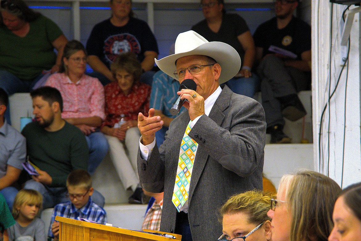 Buyers filed into the indoor arena and packed the bleachers Aug. 8 for the Market Animal Sale to place bids at 50-cents-per-pound increments on market broiler, steer, lamb and swine. The Grand Champion market broiler, raised by Cameron Kerttu of 4-H, was purchased by State Farm. The Grand Champion steer, raised by Maggie Cox of 4-H, was purchased by Bennett Brothers. The Reserve Champion steer, raised by Gabriel Warren of FFA, was purchased by Pierce Auto Center. The Grand Champion lamb, raised by Olivia Magee of 4-H, went to Pape Machinery. The Reserve Champion lamb, raised by Tonya Copeland of 4-H, went to Pluid & Sons. The Grand Champion swine, raised by Kelsey Noble of 4-H, went to South Hill Lockers. The Reserve Champion swine, raised by Leila Christensen of 4-H, went to the Bonners Ferry Veterinary Clinic.