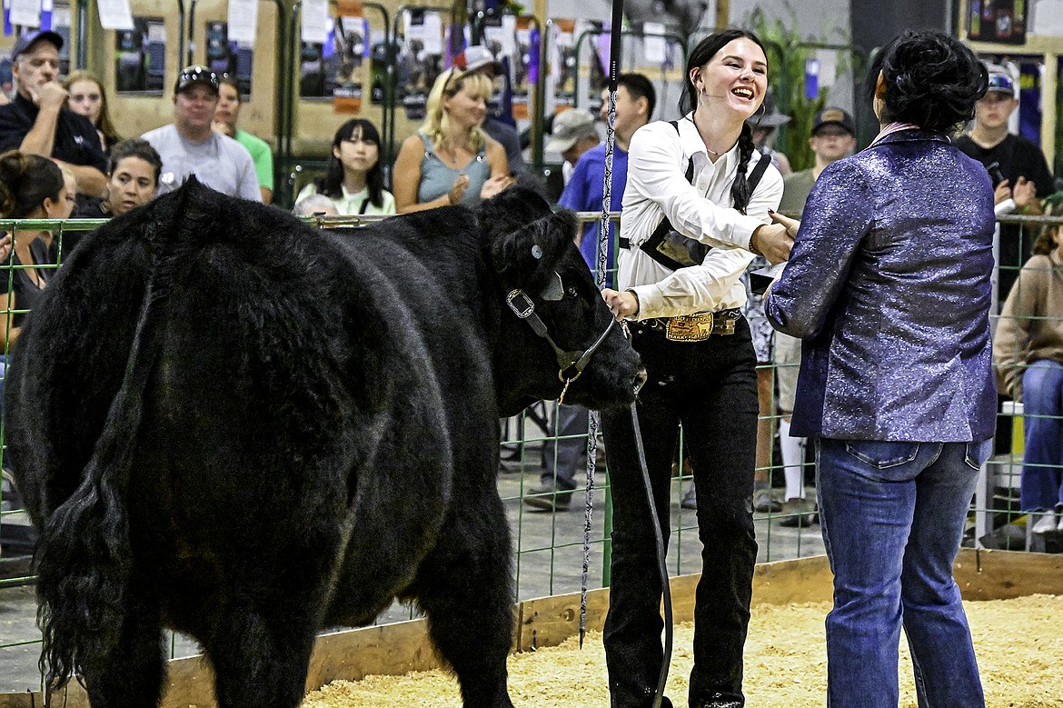 As Plummer guided her steer out of the ring, she was met with hugs and congratulations. She has shown cattle for roughly seven years. Plummer thought it was the questions the judge asked to assess her knowledge that gave her the competitive edge.