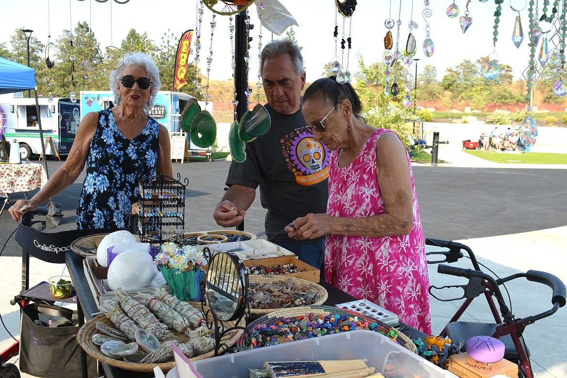 POST FALLS — The wind made the jingling of suncatchers sound like music Wednesday at the Sacred Geometry Gems booth at River City Market and Music.