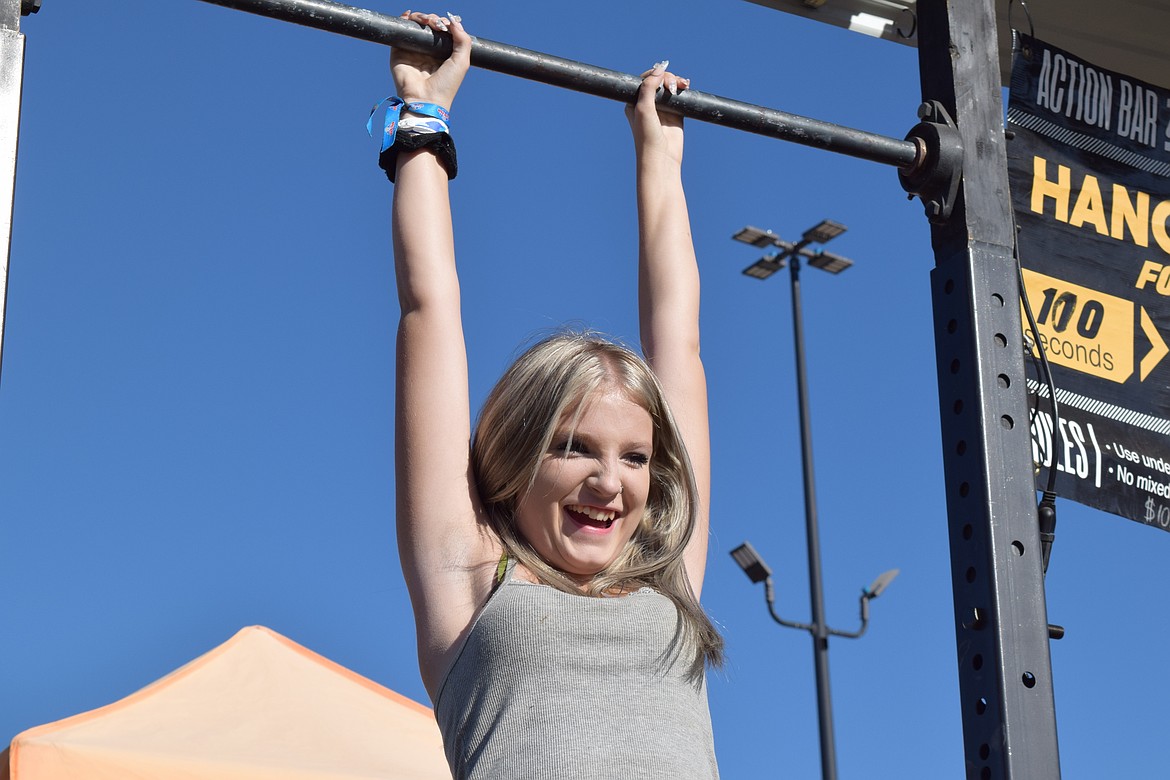 Elizabeth advises challengers to lock their wrists once they find their grip on the bar.
