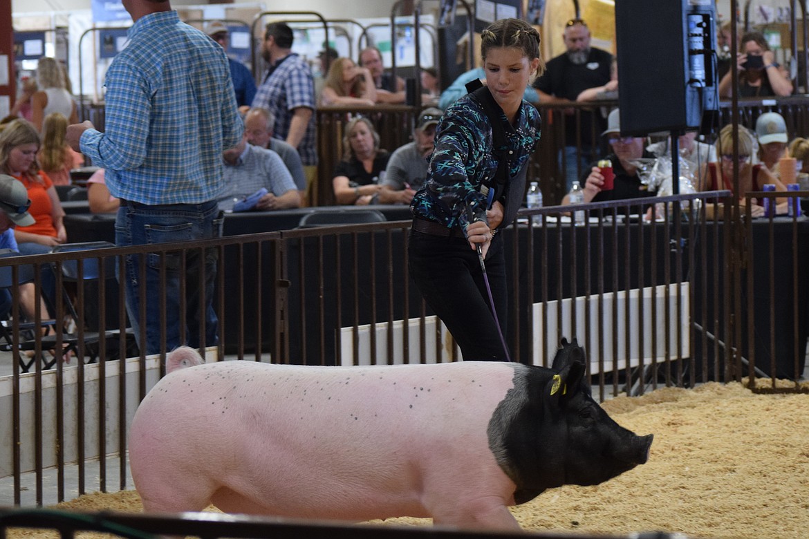 Keira explained that the livestock judge looks for “smooth movements” as participants guide their pigs around the pen, as well as the demeanor of who is showing the livestock.