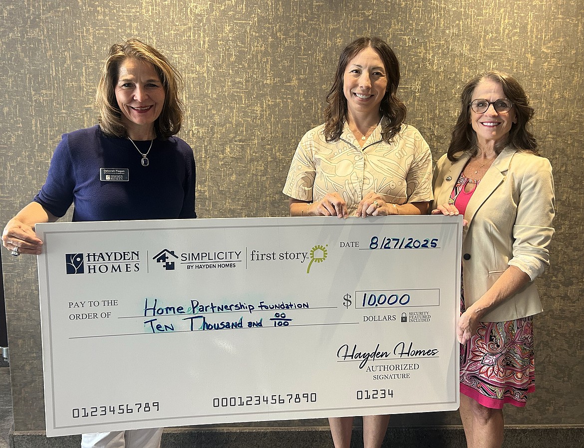 Hayden Homes donated $10,000 to the Coeur d'Alene Regional Realtors to support silent second mortgages for homebuyers in Kootenai County.