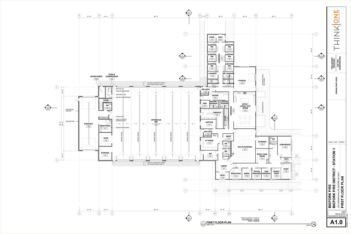 The new station would include an administrative wing housing the district headquarters, firefighter living/working wing comprised of bedrooms, bathrooms, laundry, kitchen, dining, dayroom, office, workspace, gym and storage spaces. There would also be a public lobby and restrooms, with a multi-purpose meeting/training room.