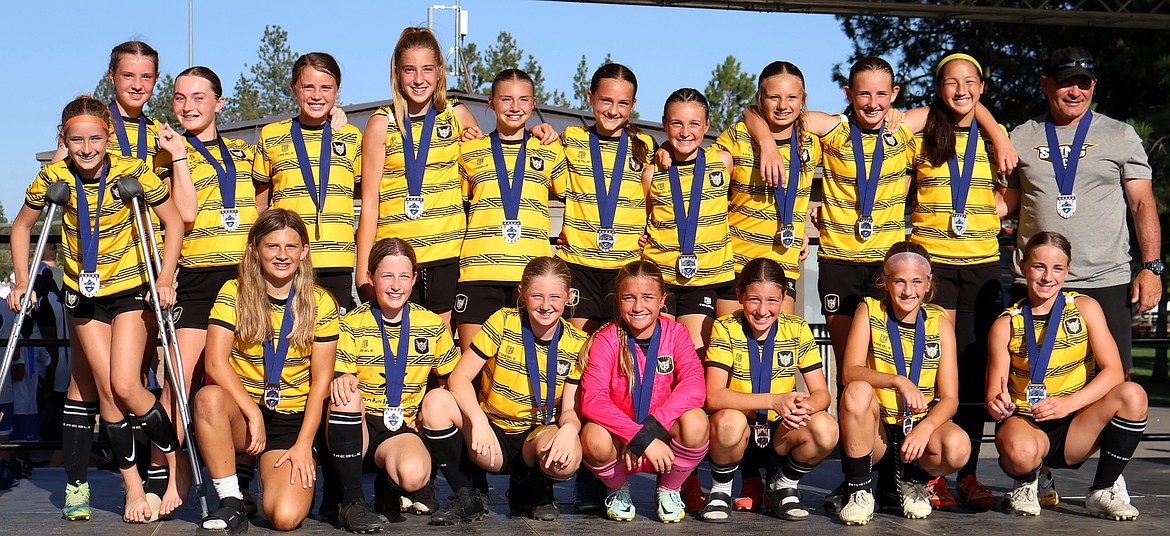 Courtesy photo The Sting Soccer Club 2012 (U14) girls Academy and Premier teams played in the Empire Cup against Washington East Surf teams over the weekend and played each other in the final. The Academy team took first place and the Premier team took second place. In the front row from left are Ariana Leferink, Lauryn Romey, Sara Fischer, Briella Ayers, Adelyn Horsley, Sophia Quigley, Lillian Harns, Noelle Raber, Isabel Moss, Kyrie Bitnoff, Quinn Martin, Isabel Heath and Tia Frank; and back row from left, Madeline Olivier, Tessa Schmidt, Marlys Smith, Ocoee Kaplan, Chloe Quinn, Eloise Mandel, Olivia West, Arden Mickelson, Elliot Baune, Isabella Baker, Allie Stone, Myah Lindquist, Aubrey Heath, Daisy Griffin, Sienna Buffum and Cali West. Not pictured are Elayna Smith and coaches Matt Ruchti, Madyson Smith, Katie Martin, Tim Quinn and Josh Baker.