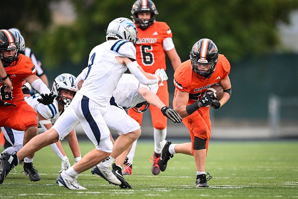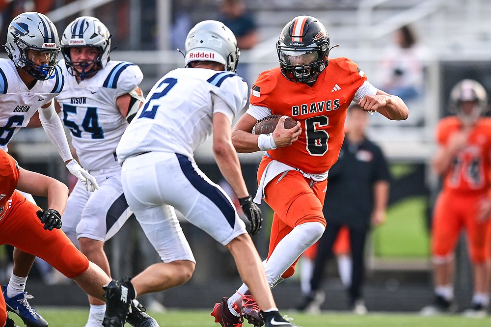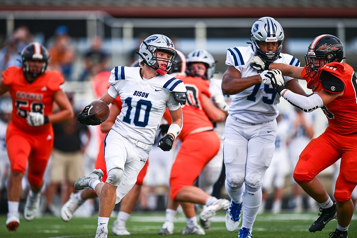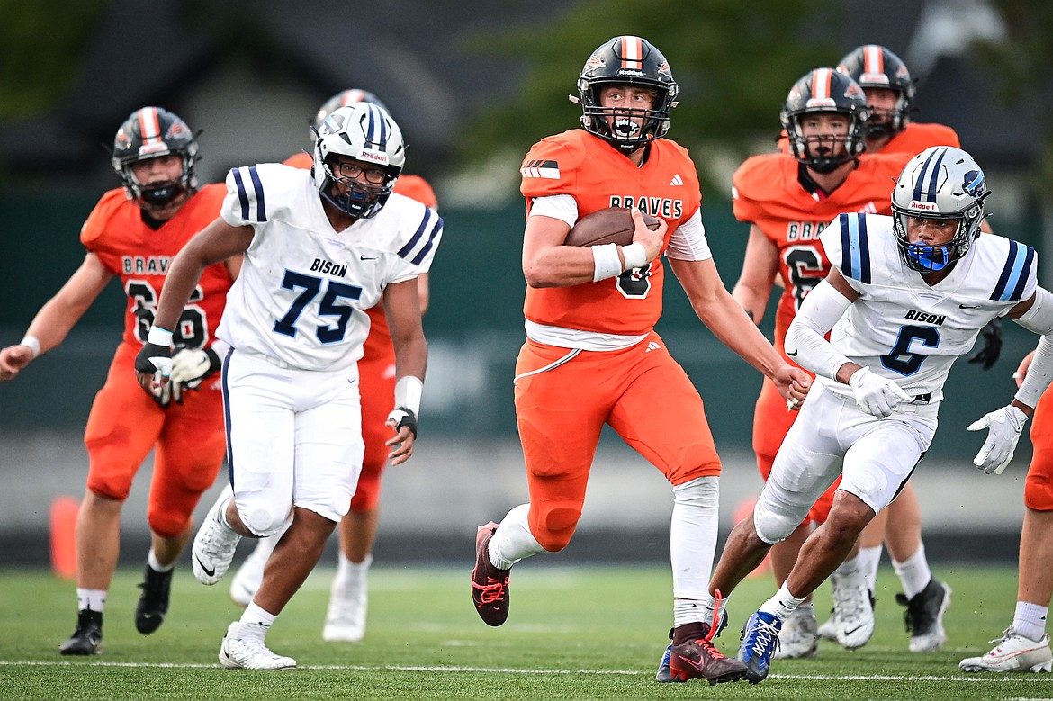The Flathead Braves squared off against the Great Falls Bison in Class AA high school football at Legends Stadium. The game was called at halftime due to lightning with Great Falls leading 21-7.