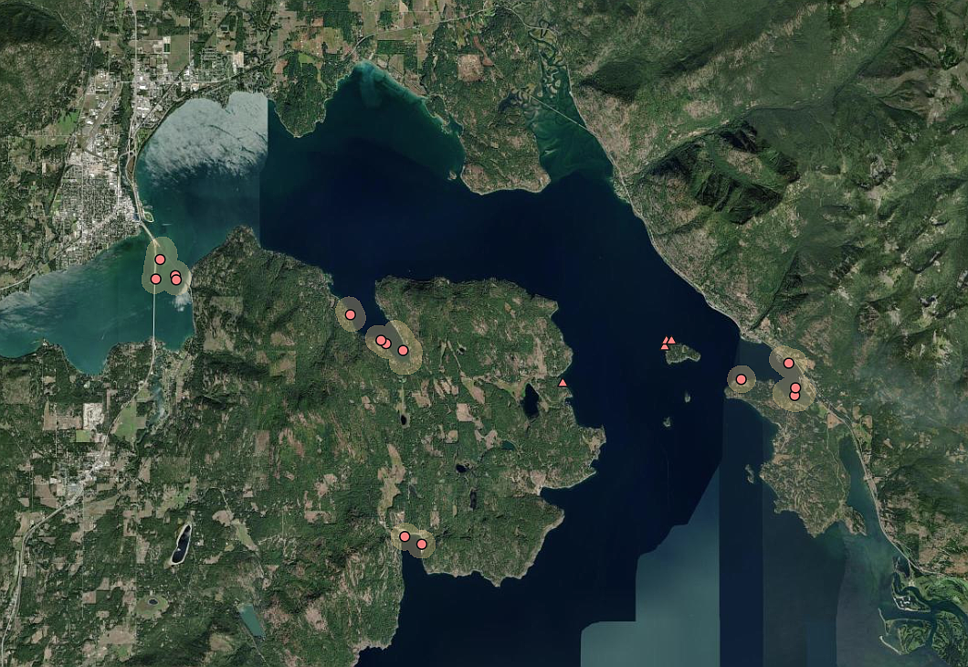 Only selected locations in Lake Pend Oreille were targeted, with the largest areas of herbicide use taking place in Bottle Bay, Ellisport Bay and off the north end of the Long Bridge by Dog Beach. Smaller applications were done around those areas and in Garfield Bay.