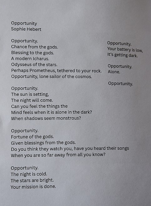 The Poetry Club also awarded a $50 monetary prize for the best literary and best art submissions and $25 for honorable mentions. The first-place literary award went to Gavin Adcox for his poem, “Leaving.” The art award to Syler Huerta’s mixed-media piece, “Space Junk Galaxy."