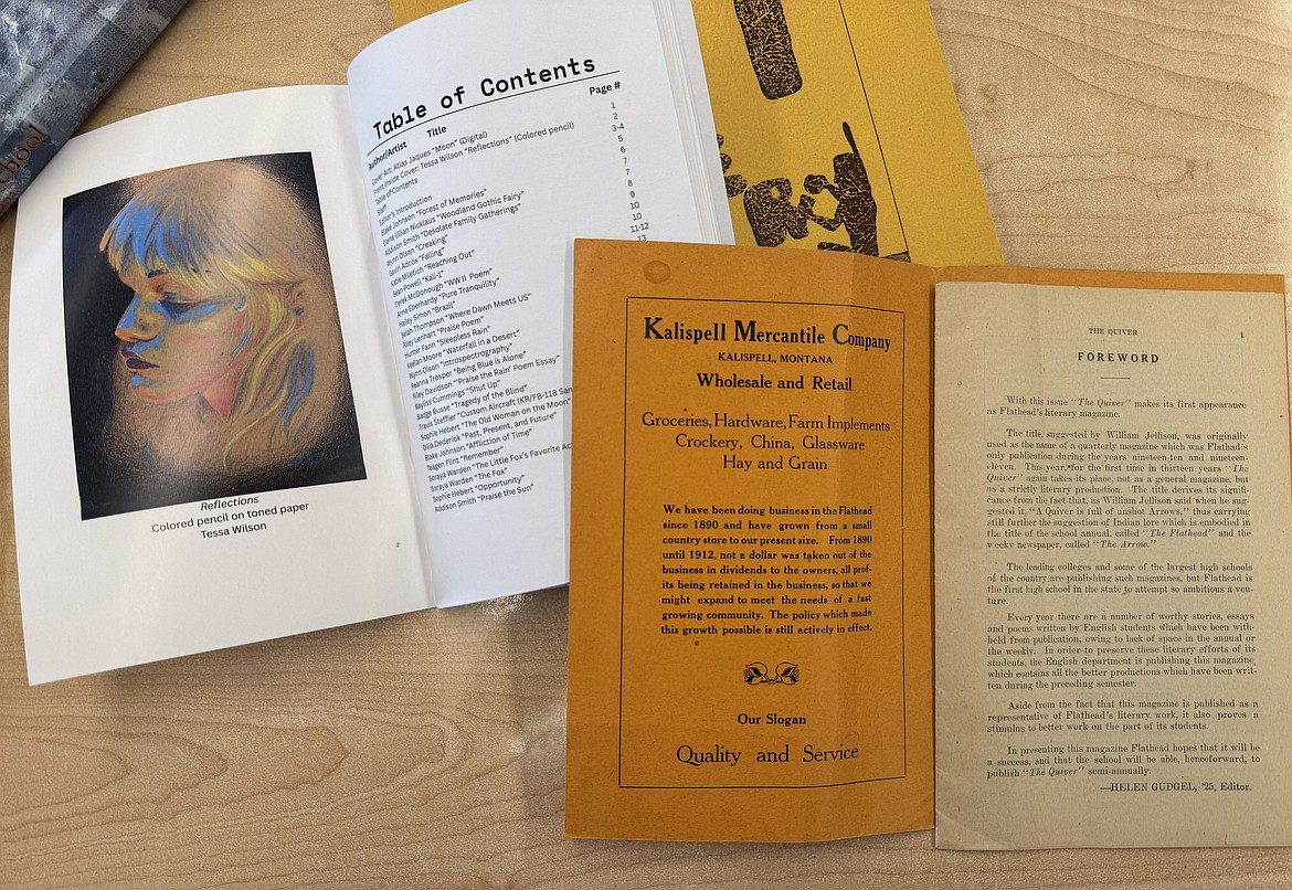 Her sentiment echoes that of editor Helen Gudgel's foreword in the first volume of “The Quiver,” dated Feb. 8, 1924, still tucked away in the school library. Librarians retrieved a couple more vintage volumes that Kreiss made available during a June interview about reviving the literary magazine in her classroom at Flathead.