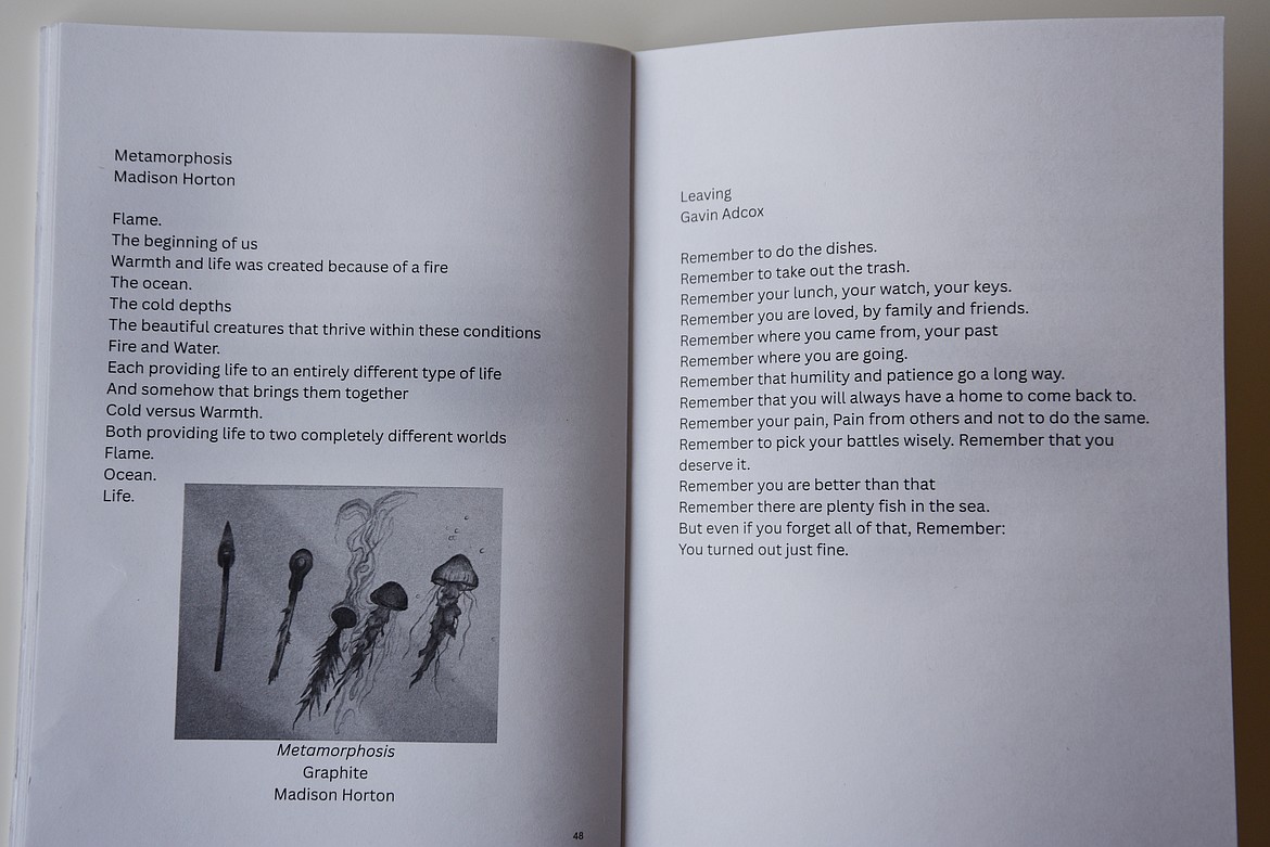 When the students set out to bring back the literary magazine, they made few constraints for the types of submissions, outside of limiting it to three per student, according to Herbert and Olson. This was done to allow for the literary magazine to represent “a variety of voices” Kreiss said.