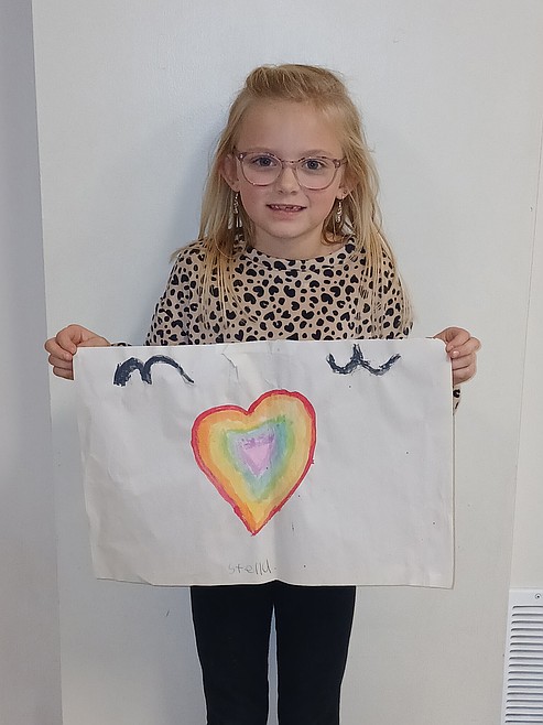7-year-old Stella Bjorkman loves to draw. Though she usually prefers to sketch something out of nature, she jumped at the chance to design something a little more festive ahead of the holidays, creating a big rainbow heart to be turned into wrapping paper.