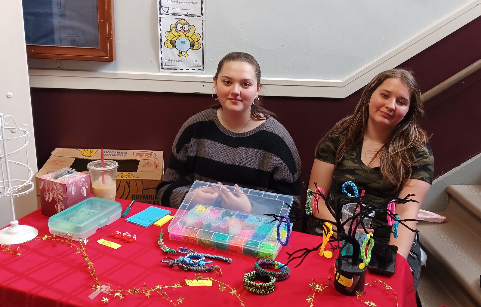 Laraiah Conrad and Xariah Leduc, both Alberton students and half-sisters, are selling their bracelets to raise money to purchase Christmas gifts for their family. Conrad works at Rivers Edge Restaurant, but LeDuc isn’t old enough for a job so this event gives them time together. (Monte Turner/Mineral Independent)ARTICLES BY MONTE TURNER