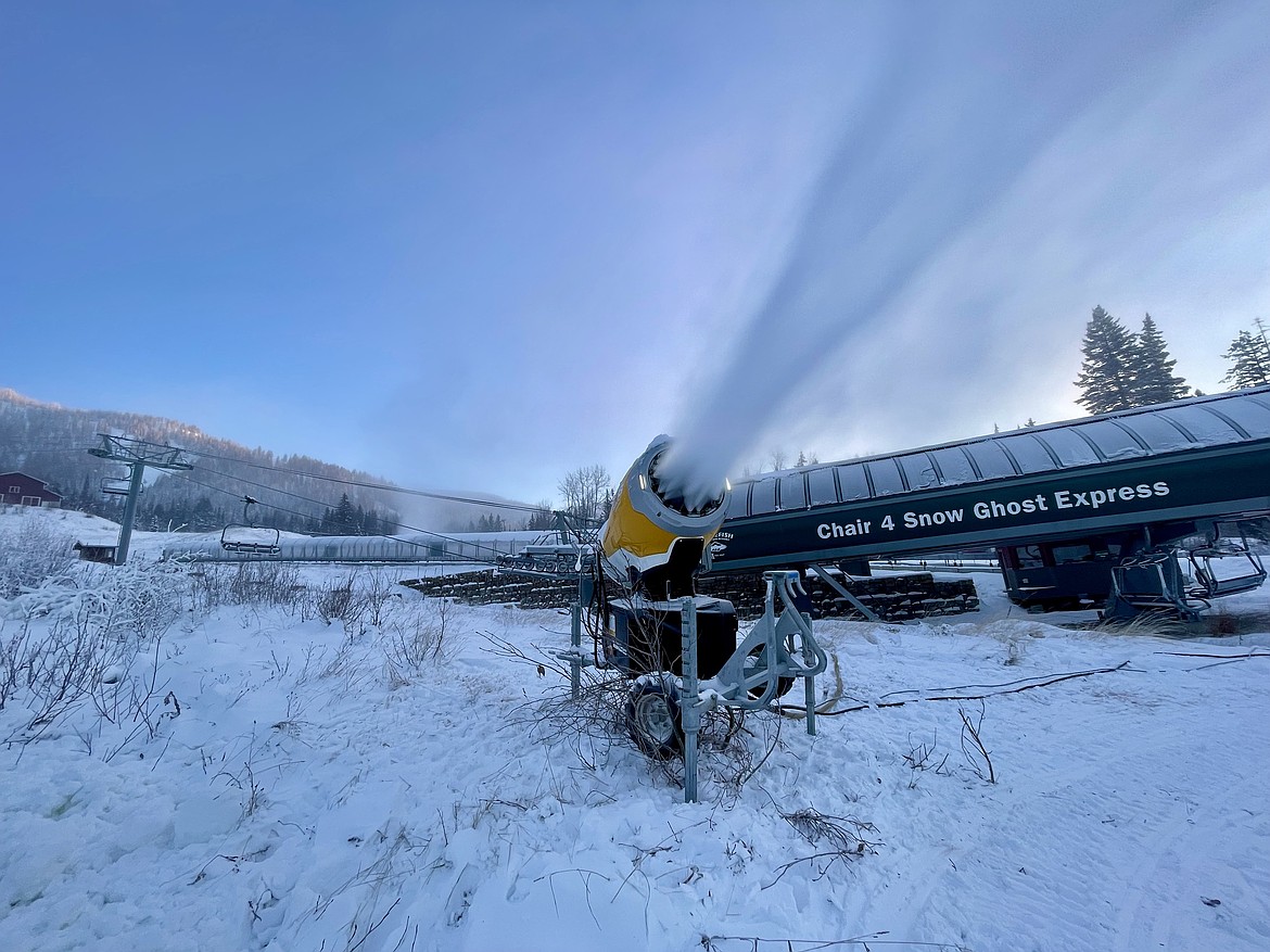 A pair of TechnoAlpin snowmaking machines was also purchased, increasing the arsenal to 19 snow guns. The modern machines can produce snow during warmer temperatures and at a higher volume than older models, helping to boost lower-elevation terrain early in the season and maintain a sufficient base throughout.