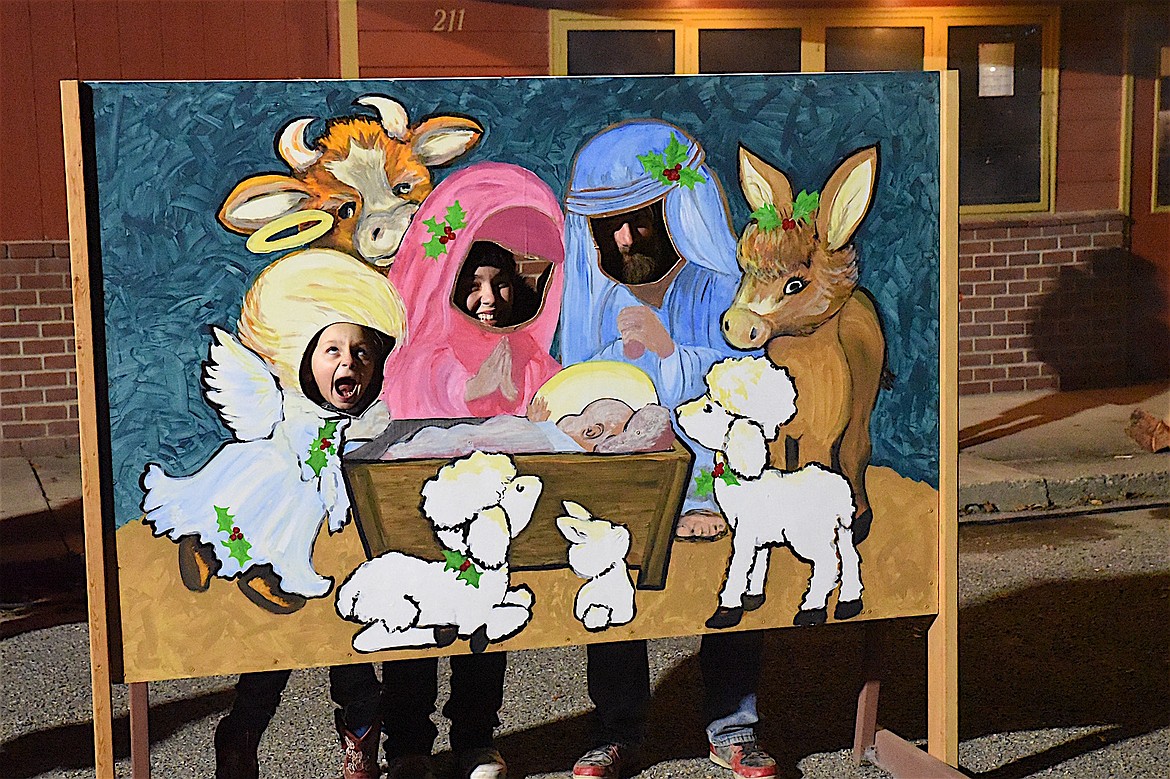 The face-in-the-hole manger scene was popular Saturday, Nov. 29, 2025, at the City of Troy's annual Christmas tree lighting. (Scott Shindledecker/The Western News)