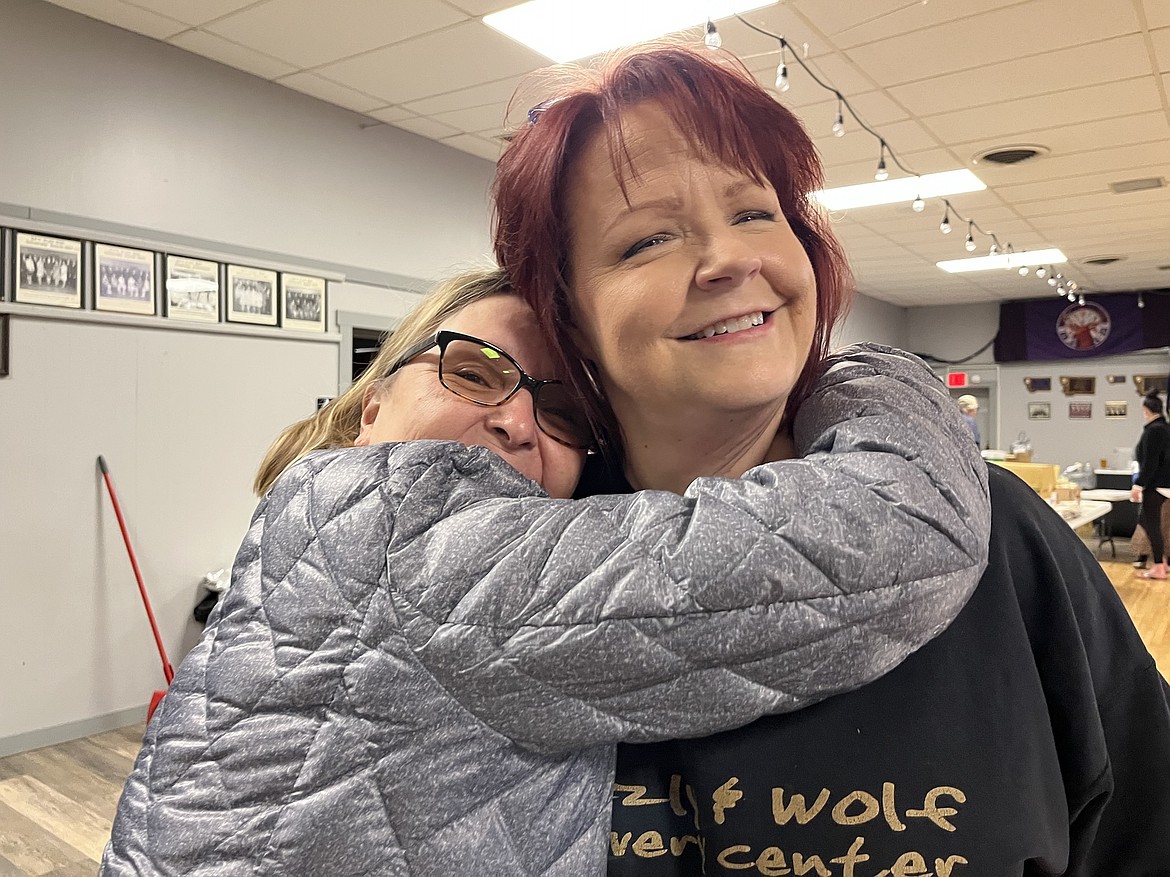 Outside, the long line of waiting vehicles had dwindled by 2 p.m., even as helpers continued to pack meals into cars and trucks for deliveries. Patty Driscoll, who tracks and organizes delivery requests for a small army of drivers, says meals were taken as far south as Post Creek this year and north to the end of Finley Point.