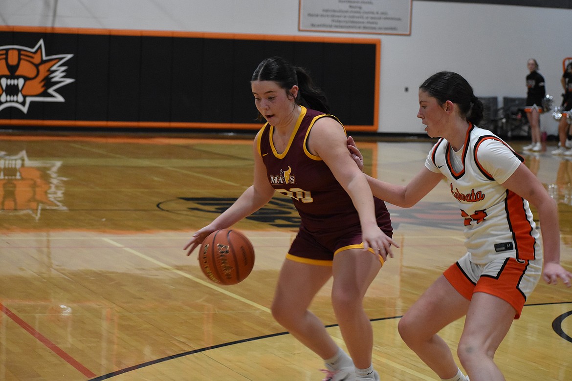 The Mavs made a good start over the Tigers with a strong defensive performance in the first half. MLHS kept up the pressure on the net and kept Ephrata under 10 points until the final few seconds of the half, when Maycee Black scored a layup to put the score at 23-11.
