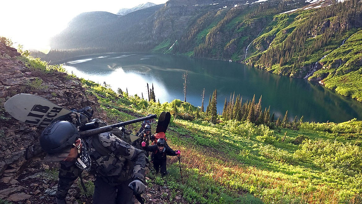 Both Robinsons, Starling, plus another snowboarder, Shawn Onthanks, and of course, the animals, ventured deep into the Bob Marshall in June and July, with a few extra filming days on the Great Northern and at Logan Pass in Glacier National Park.