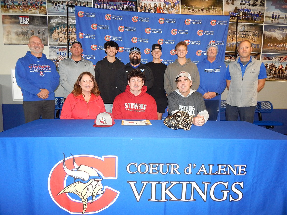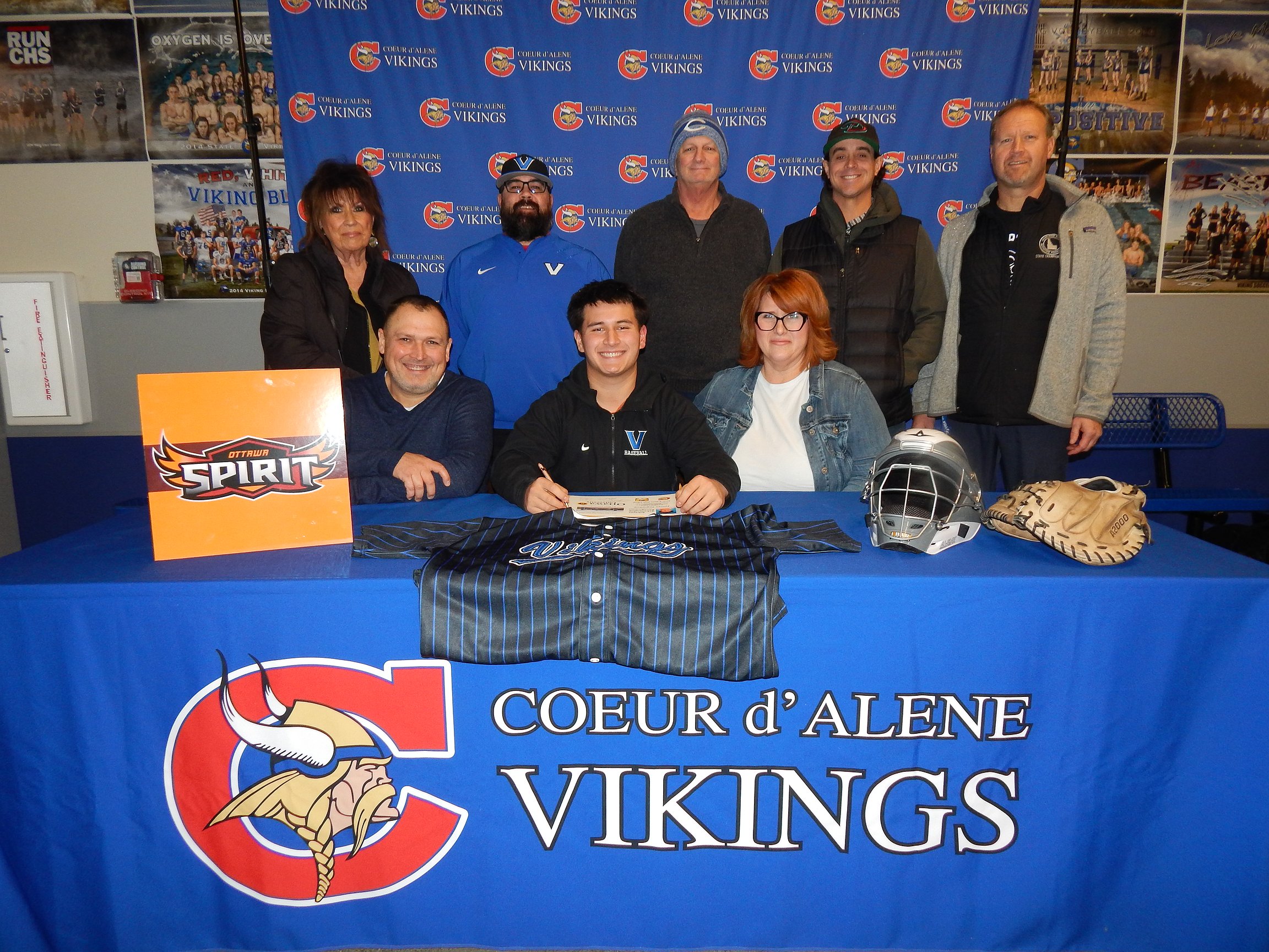 Courtesy photo Coeur d'Alene High senior James Togiailua recently signed a letter of intent to play baseball at NAIA Ottawa University in Surprise, Ariz. Seated from left are Daniel Flanagan (dad), James Togiailua and Julie Flanagan (mom); and standing from left, Kathy Wright (grandmother), Brandon Williams (Coeur d'Alene High head baseball coach), Mike Borowski (Coeur d'Alene High assistant baseball coach), Dan Ramsay (club baseball coach) and Tony Prka (Coeur d'Alene High athletic director).