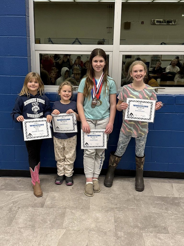 For five consecutive weekends, more than 100 Bonners Ferry wrestlers — ranging from under 6 years old to middle schoolers — competed in the North Idaho Wrestling League. A total of 106 wrestlers finished with a top placement in at least one meet, including 6U wrestlers who earned blue or red ribbons.