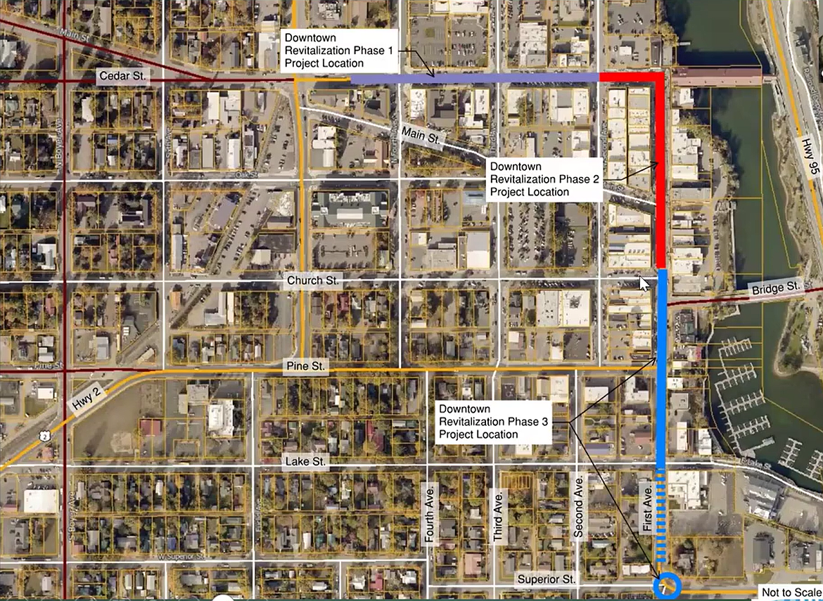 The project will be funded by the Sandpoint Urban Renewal District and the city’s Water Fund. The design contract will cost the city $741,700 and include additional preliminary designs for the fourth phase of the project, which would extend from Lake Street to Superior Street.