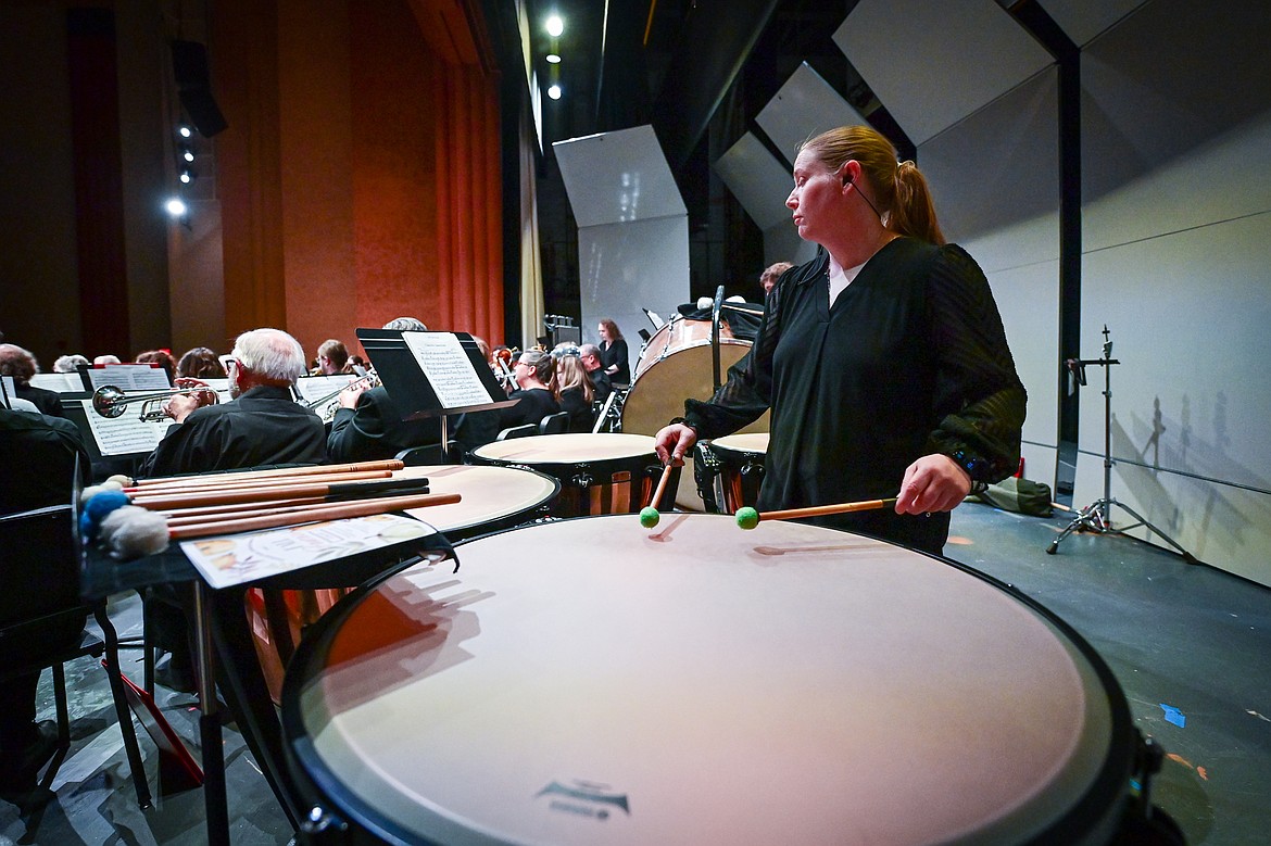 Heidi Holmquist plays the tympani during Flathead Valley Community Band's Fall Fantasy Concert held at Flathead High School on Wednesday, Nov. 12. (Casey Kreider/Daily Inter Lake)