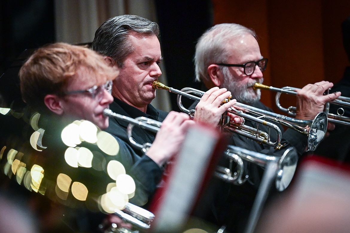 Trumpeters Trey Harrold, Gerry Schultz and Paul Watson perform with the Flathead Valley Community Band during their Fall Fantasy Concert held at Flathead High School on Wednesday, Nov. 12. (Casey Kreider/Daily Inter Lake)