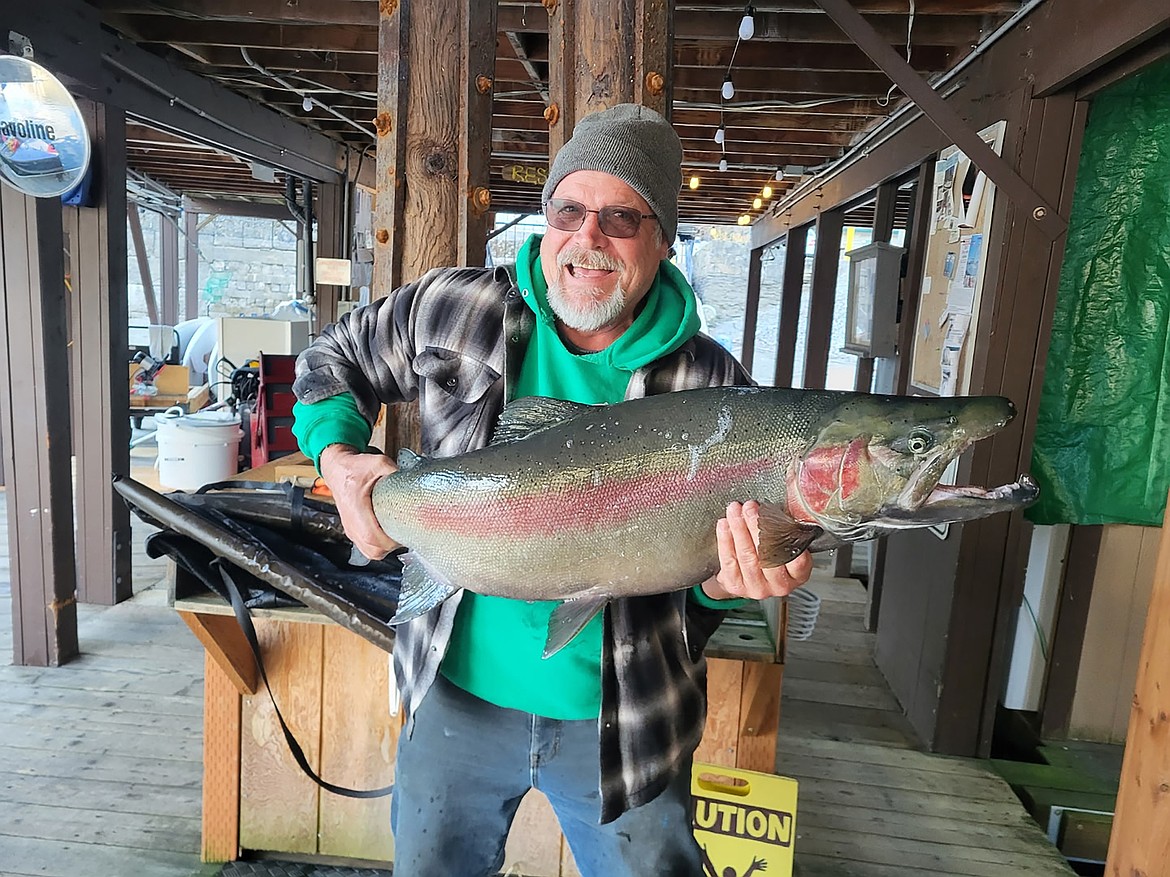 Tim Smith of Hauser hooked a 23.95-pound rainbow early in the morning on the derby's final day to edge out Craig O'Neal of Hauser, Idaho, who also hooked a 23.95-pound rainbow. Smith, a farmer from Ritzville, caught the winning fish, which measured 38 1/2 inches, early Nov. 30, the derby's final day. Later in the day, O'Neal caught his fish, which measured 37 1/2 inches. While both fish weighed 23.95 pounds, LPOIC derby rules stipulate that whoever caught their fish first is the winner.