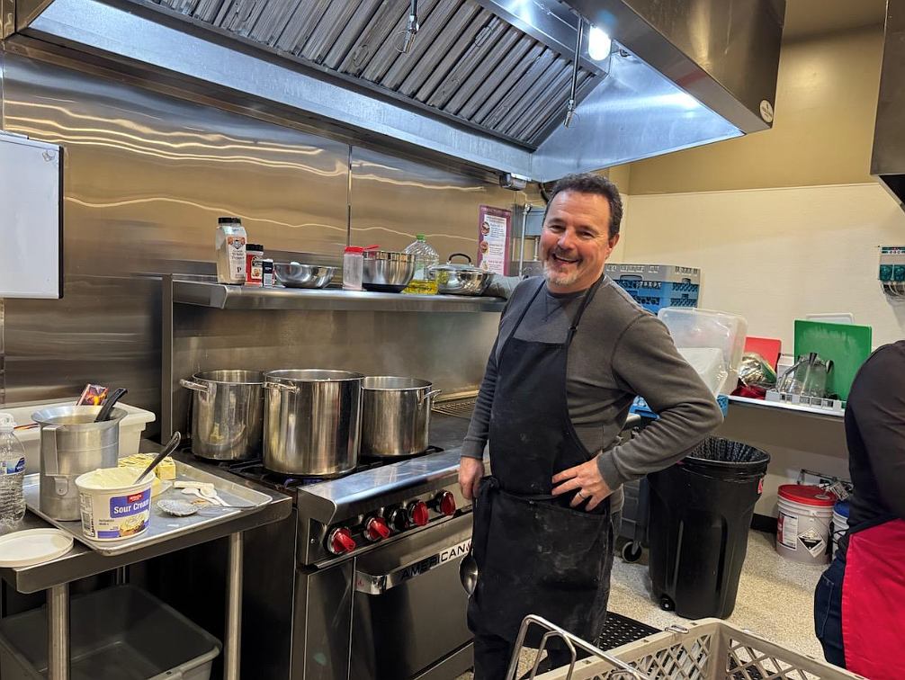 About 30 volunteers pitch in to sort clothes, prep food, clean tables and more as about 160 people come to the community meal each week.