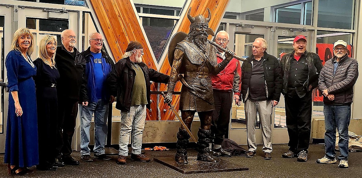 The unveiling of the artist Terry Lee's Sigvard the Viking bronze at a Coeur d’Alene High private reception Tuesday thrilled Anne Lunceford Capellen.