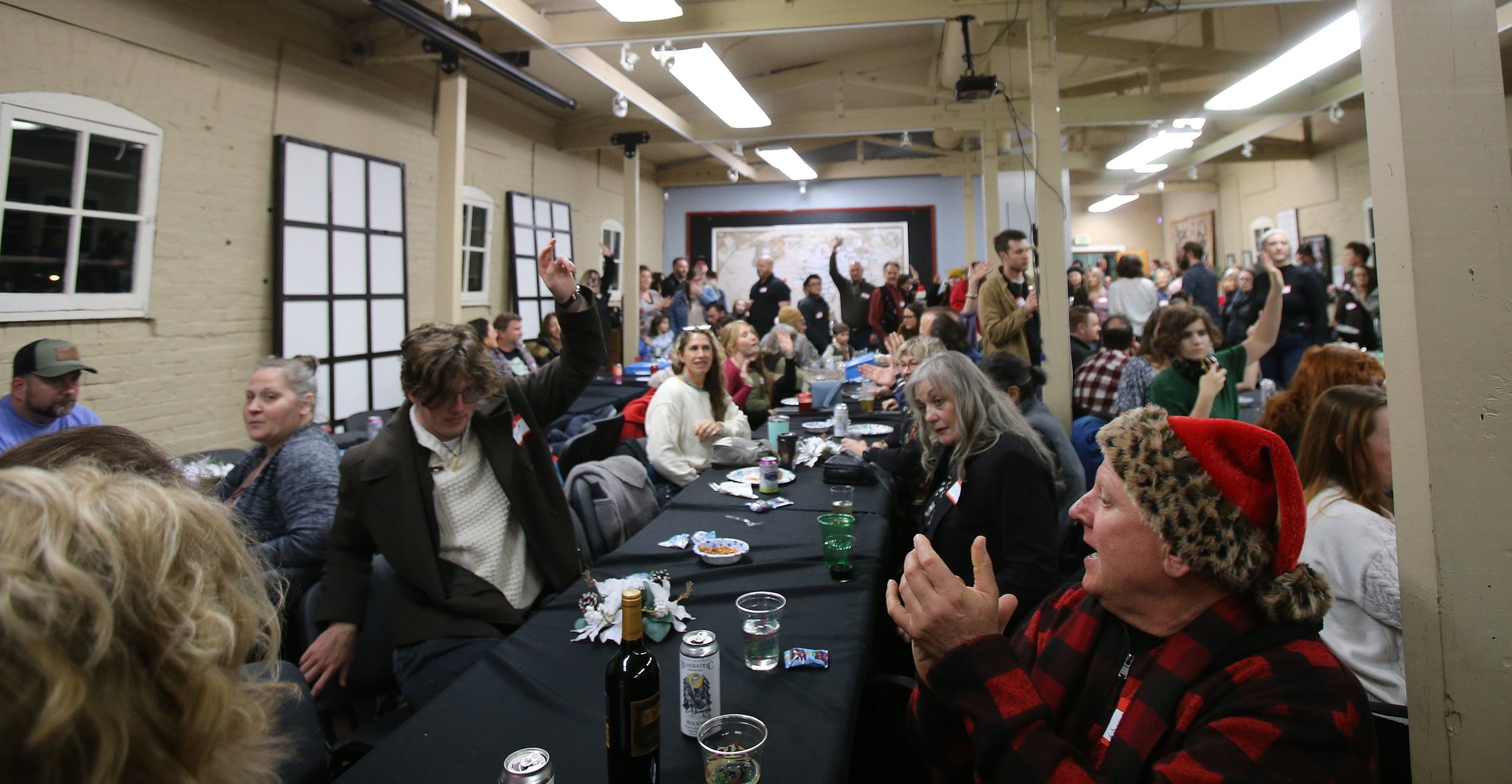 Babies in Santa hats, jazz musicians in dapper suits, best friends, complete strangers and everyone in between came to the holiday-themed dinner, which featured sweet and savory fare ranging from cookies, cakes and cocoa to pizza, lasagna, fried chicken and chili.