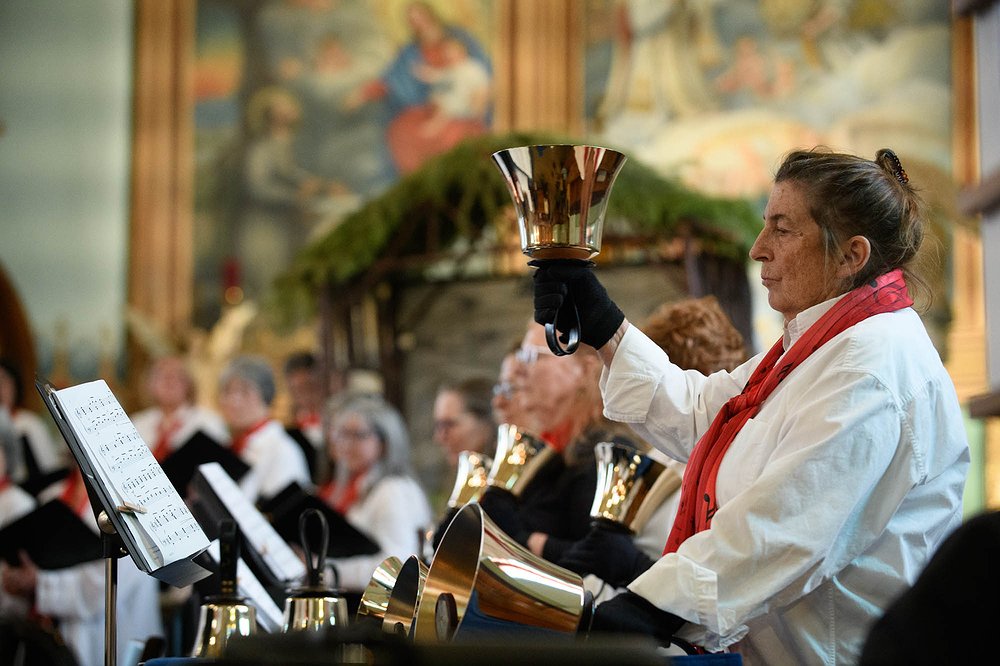 Cathy Gillhouse directed the lifting harmonies from the soprano, alto, tenor and bass singers, and Bob Mazurek directed the rhythmic chimes of the Copeland Memorial Bell Ringers. The choral society is a non-profit choir group that has existed in Lake County since the 1960s and does annual Christmas and spring concerts.