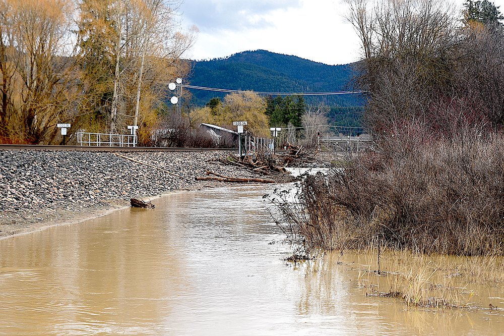 Flower Creek, which runs through Libby, was swollen above its banks and threatening bridges.