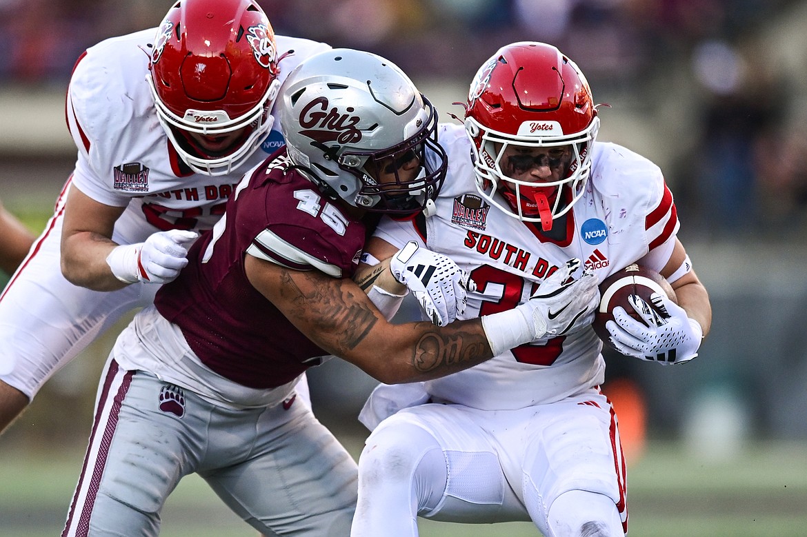 South Dakota closed to 24-8 just before halftime, Phillips breaking loose on a fourth-and-1 for a 23-yard score. The Coyotes (10-5) had the ball to start the second half but went nowhere; they punted and Deck was able to exploit a gap in the coverage, make a cut near midfield and outrace two pursuers for UM’s first special teams TD of the season.