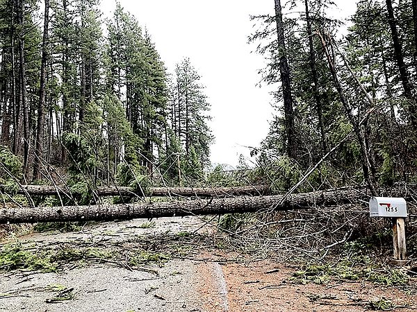Following last week’s catastrophic flooding, damaging winds late Tuesday night and Wednesday knocked down trees across Western Montana, damaging homes and property, blocking roads and causing power outages that are affecting tens of thousands of customers.