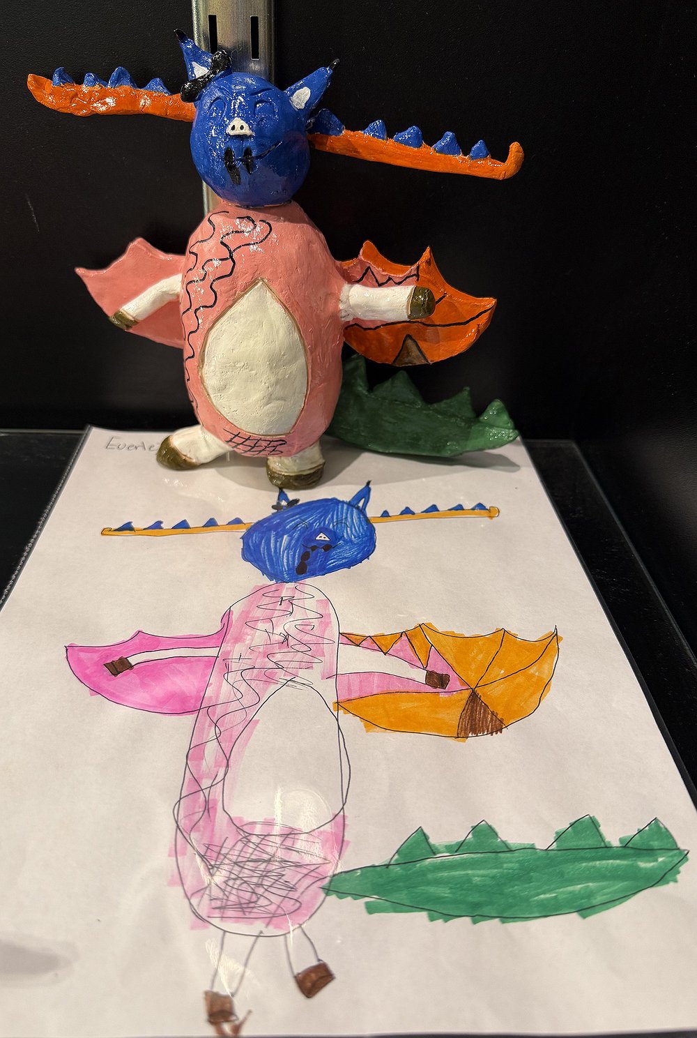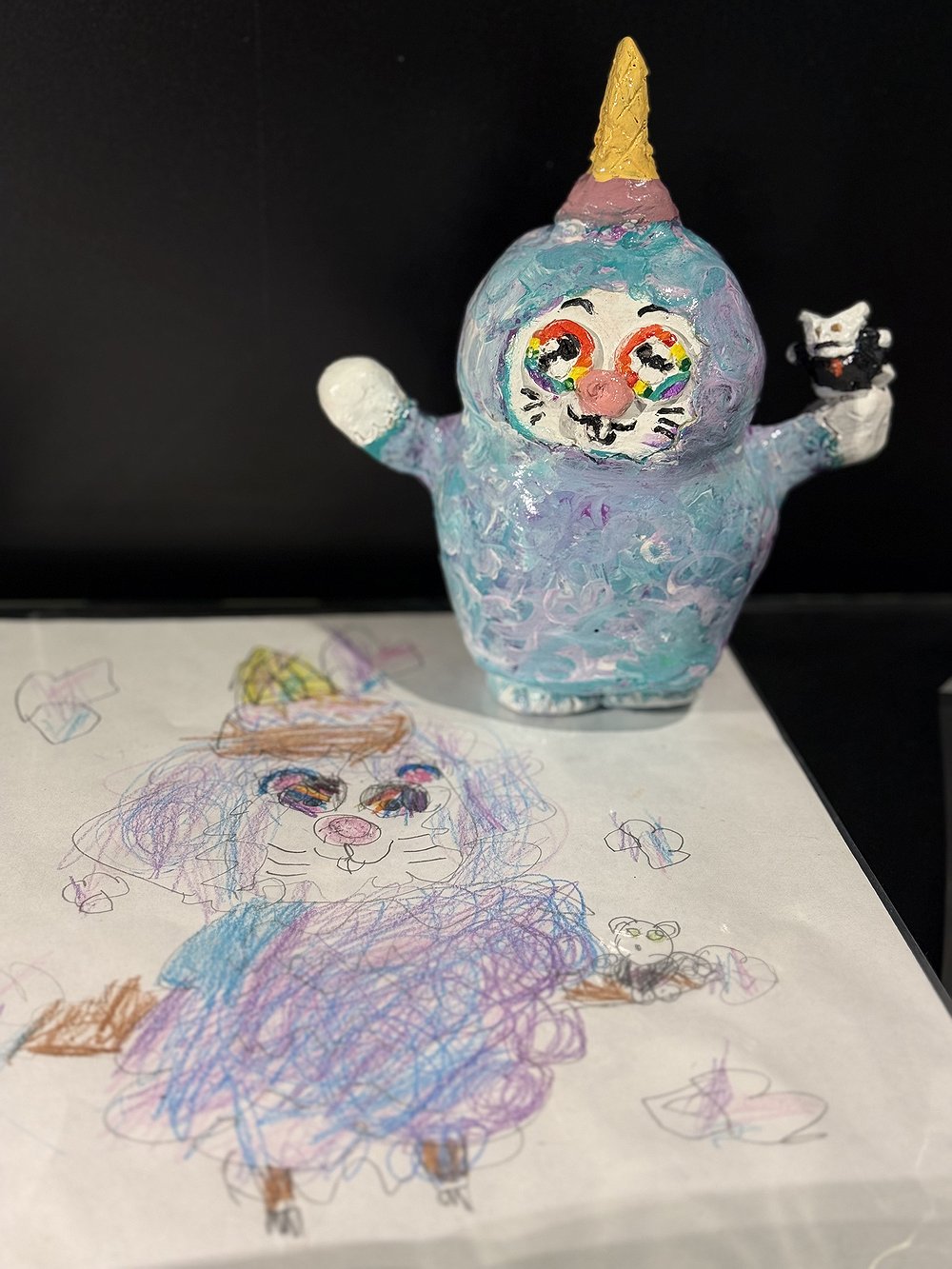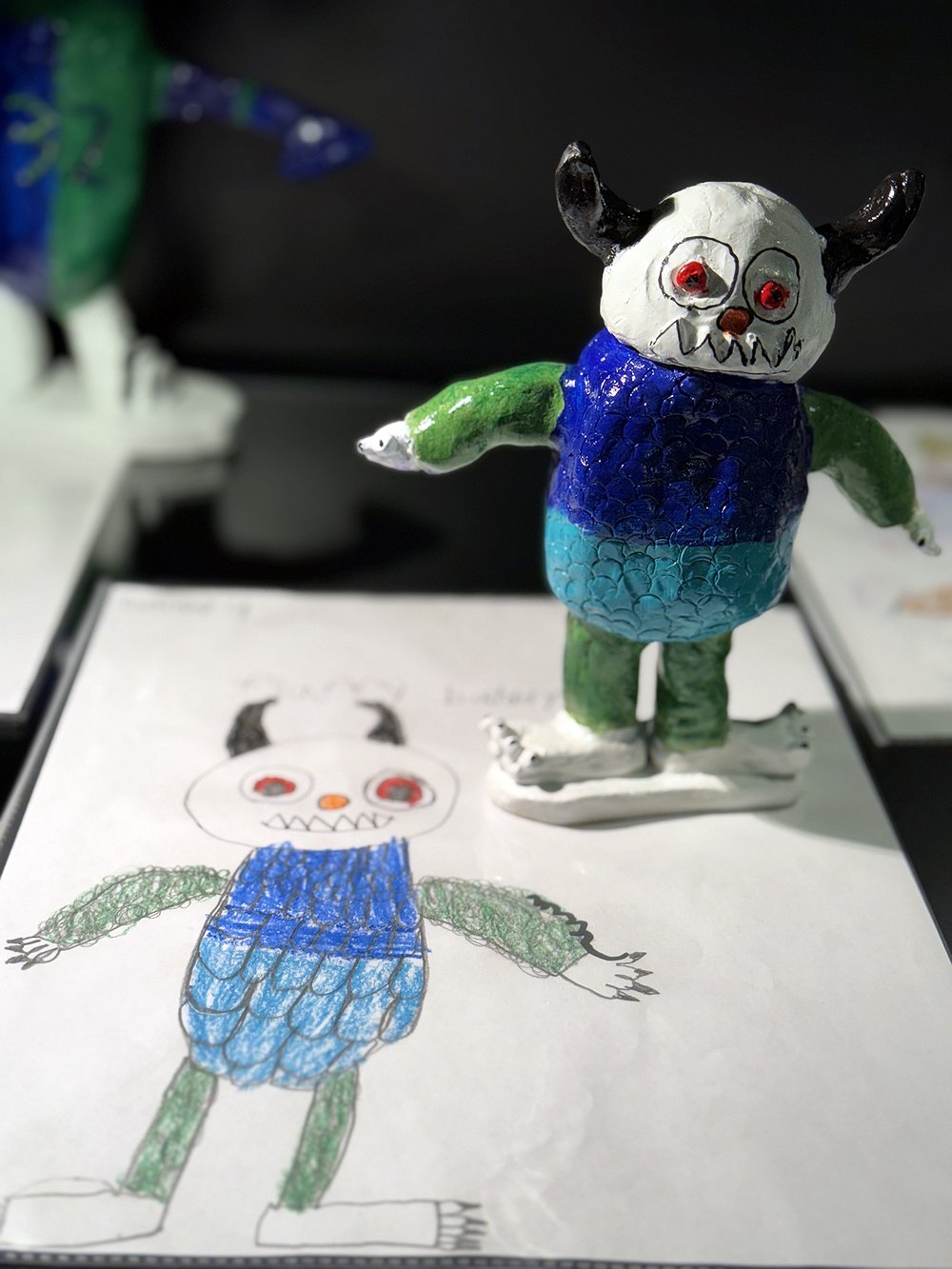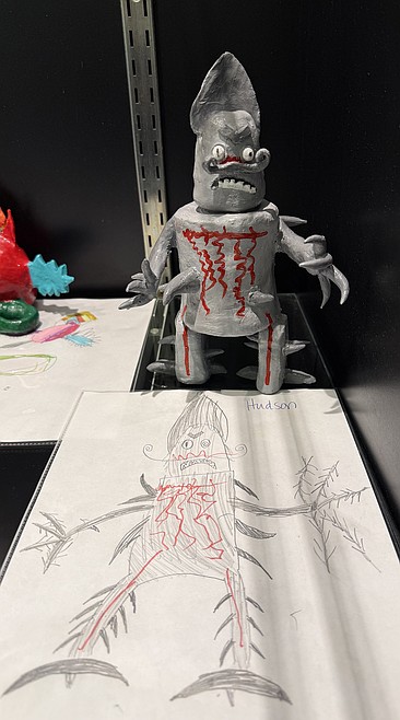 Most high schoolers completed two monsters, and Minton’s second ogre caused a bit of trouble. O’Neil explained that at one point during the sculpting process, she returned Minton’s monster for adjustments to make it more true to the drawing.