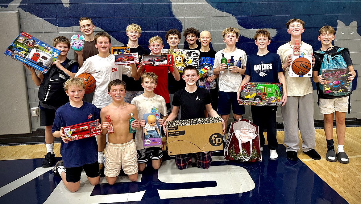 Courtesy photo The seventh grade Wolves AAU boys basketball teams made donations to Union Gospel Mission in a joint effort with Lake City High School’s effort to fulfill several wish lists for kids this holiday season. In the front row from left are Micah Brumbach, Cam Tosi, Rowan Hammons and Cody Burrill; and back row from left, Sawyer Smith, Cannon Randklev, Mac Roberts, Bricen Cornett, EJ Von Behren, Ashton Elwell, Keegan Rosenberger, Rourek Denton, Kellan Larson, Camden Glindeman, Griffin Higgins and Keaton Knoll.