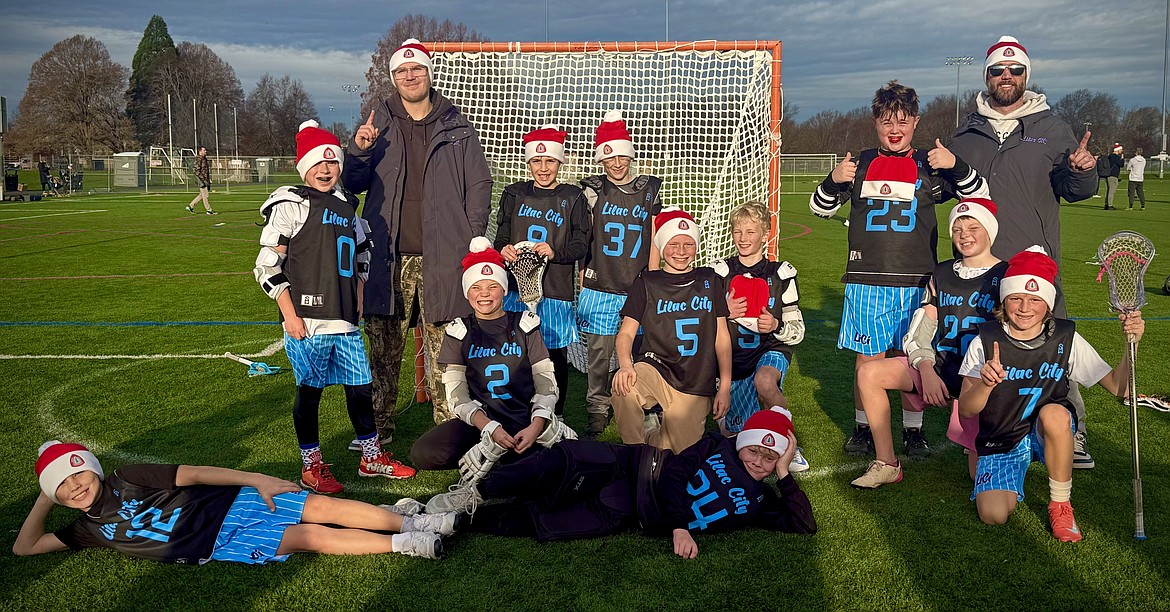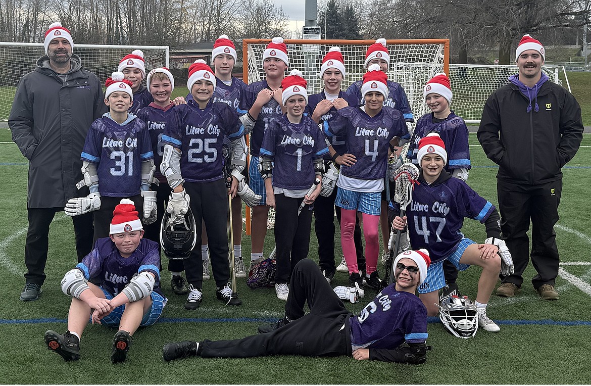 Courtesy photo The Lilac City boys 2033/34 lacrosse team, with most of its players from the Coeur d'Alene Falcons on the North Idaho Youth Lacrosse teams, took home the championship winning five games this past weekend at the Sixes Showdown in Portland, Ore. In the front row from left are JJ Campbell, Holden Hays and Kamran Rosenberger; and back row from left, Judge Buckner, assistant coach Micah Rickards, Riggens Hageman, Titus Young, Sascha Steinhoff, Jamison Lunsford, Brody Theriault, Maxx Dunham, Brayden Lange and head coach James Campbell.
