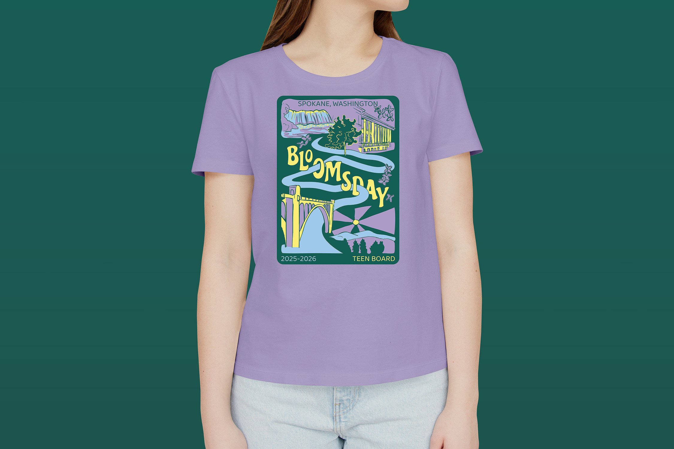 Rapier also won a Bloomsday T-shirt design contest for the new Lilac Bloomsday Association Teen Advisory Board. Her artwork layers illustrations of Spokane landmarks, including the Monroe Street Bridge, structures and the city’s signature lilacs, in a collage using purple, yellow and green.