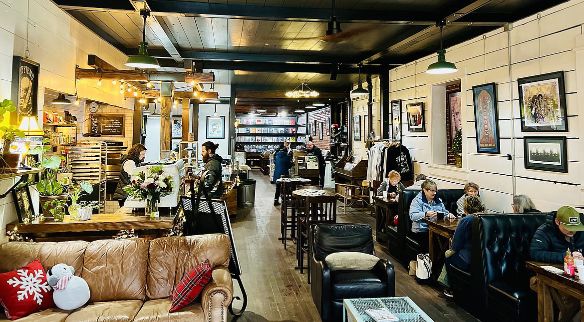 The Tin Snug, tucked near the corner of Bank and Seventh Street, isn’t your typical breakfast or lunch spot. It’s also not your average record store. It serves ice cream, beer, and coffee, too. Housed in an old funeral home, the Irish-themed shop leans into the darker side of things while staying festive and unmistakably Wallace.