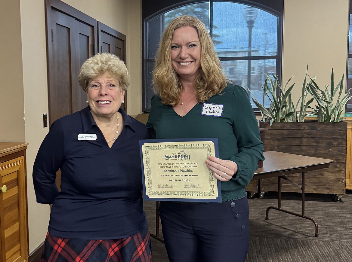 Greater Sandpoint Chamber of Commerce officials have recognized Stephanie Hawkins as its December Volunteer of the Month, honoring her outstanding commitment to service, leadership and community impact throughout Bonner County.