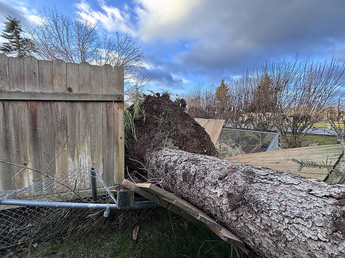 Wednesday’s windstorm caused widespread damage to Avista’s infrastructure. The moisture on the ground from the recent rain, combined with strong winds, brought trees and vegetation into contact with power lines and poles, pulling them to the ground.